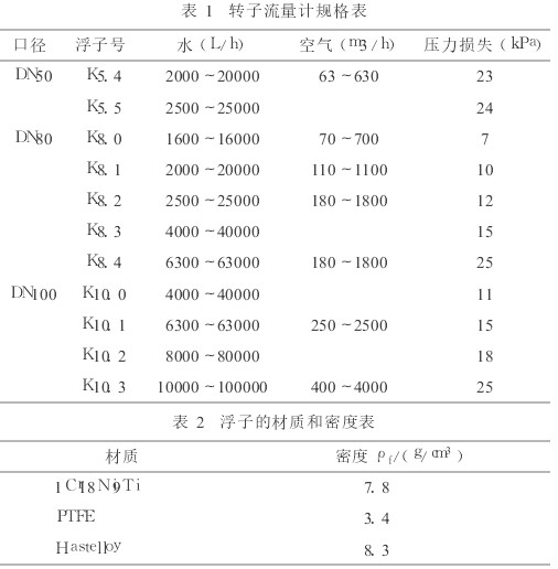 通過查詢KF10的轉(zhuǎn)子流量計規(guī)格表,可以得知選擇口徑DN100,浮子號K10.2,材質(zhì)1Cr18Ni9Ti。