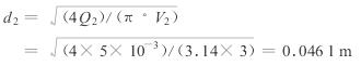 總流量:QT=(π/4)d12v1+(π/4)d22v2