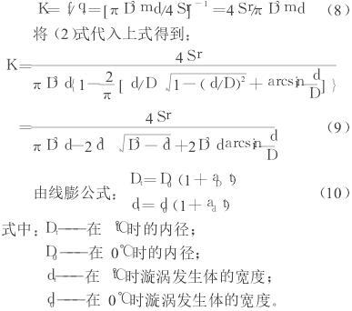 流量計(jì)出廠校驗(yàn)及其檢定工作是在實(shí)驗(yàn)室參考條件下進(jìn)行的,但一般來說現(xiàn)場使用條件都與實(shí)驗(yàn)室的參考條件有很大的偏離,這些工作條件的偏離到底會帶來大多的附加誤差至今在標(biāo)準(zhǔn)及生產(chǎn)廠家資料中尚不明確。本文結(jié)合渦街流量計(jì)的實(shí)際應(yīng)用情況,為了使檢定和計(jì)量工作更科學(xué),就溫度對渦街流量計(jì)儀表系數(shù)的影響進(jìn)行探討。