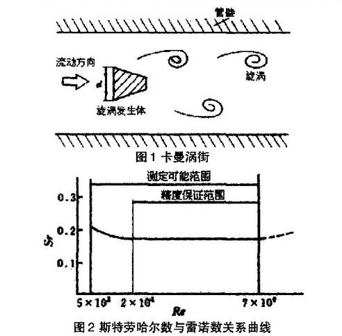 在渦街流量表中,旋渦發(fā)生體、管道的幾何尺寸決定了儀表的K值,而斯特勞哈爾數(shù)與旋渦發(fā)生體形狀及雷諾數(shù)有關(guān),圓柱狀旋渦發(fā)生體的斯特勞哈爾數(shù)與管道雷諾數(shù)的關(guān)系如圖2所示。
