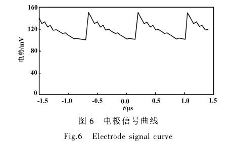 接入示波器觀察勵(lì)磁信號(hào)和電極反饋信號(hào),發(fā)現(xiàn)020MD勵(lì)磁波形穩(wěn)定,但采集的電極信號(hào)有較大干擾,被高頻信號(hào)淹沒(méi)。電極信號(hào)曲線如圖6所示。